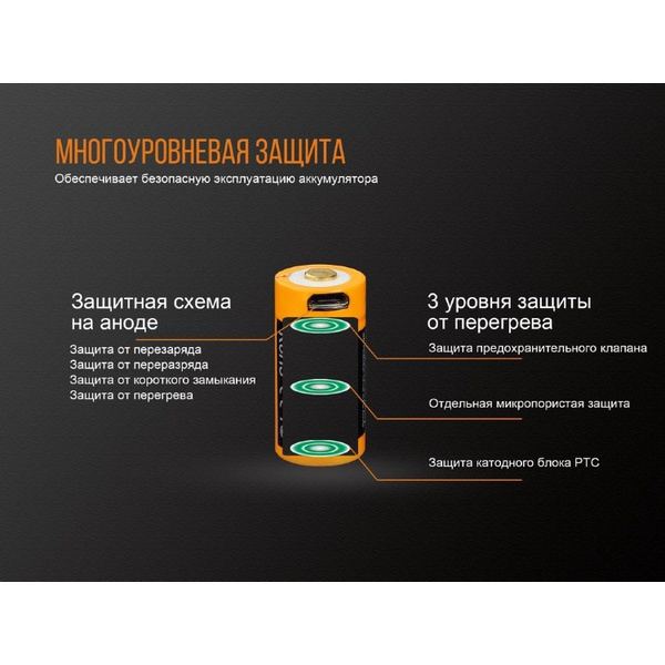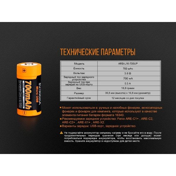Небольшой аккумулятор Fenix ARB-L16-700UP имеет массу преимуществ, среди которых не только неплохой уровень ёмкости в 700 мАч и отменное качество сборки, а и наличие современных механизмов защиты от перезаряда, обратной полярности и перегрева. Таким образом, данный элемент питания способен выдерживать интенсивную эксплуатацию на протяжении длительного периода.