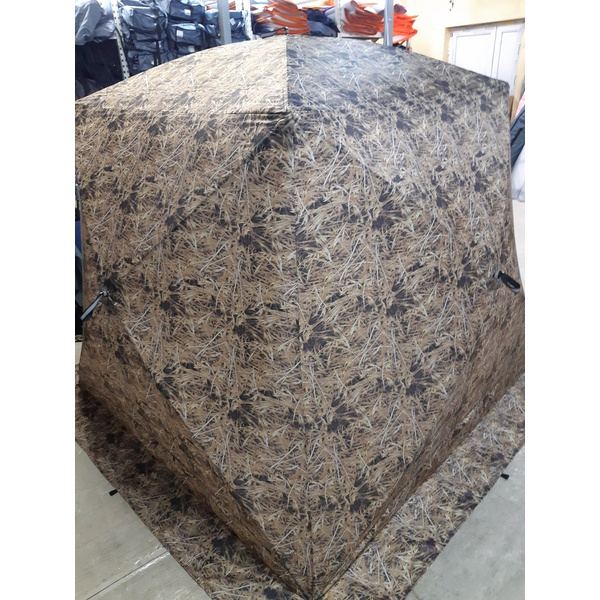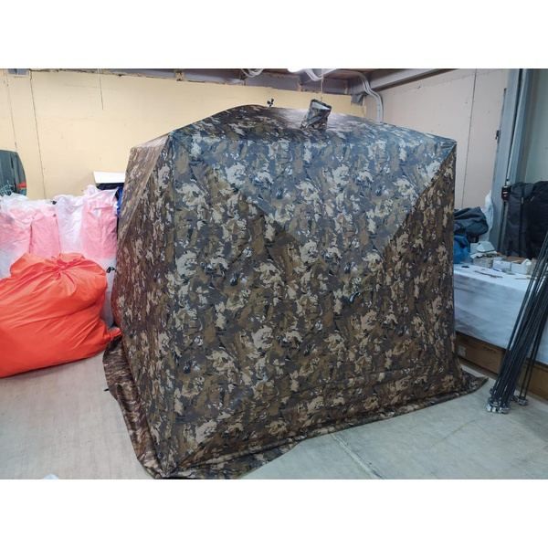 Второй вариант - так же в костре прогреваются камни, банька устанавливается рядом в удобном месте и после того как камни достаточно прогреются, укладываем их в ведро и заносим в готовую, выстеленную лапником баньку, через 5-7 минут температура позволяет приступить к парению! Удобный фирменный чехол позволяет свободно уложить после рыбалки даже обмерзшее укрытие!