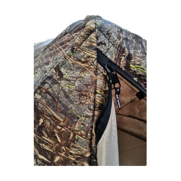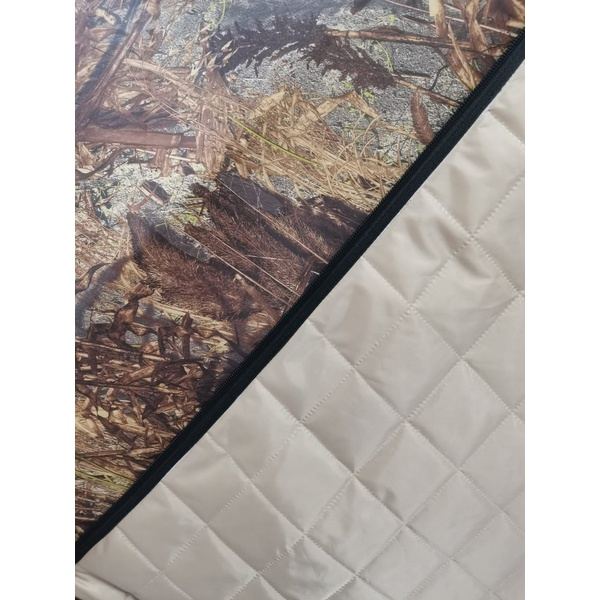 Тент имеет полиуретановое покрытие высокой степени водостойкости, с обоих сторон, что позволяет быстро его просушить перед транспортировкой и не даст утеплителю напитать в себя влагу.