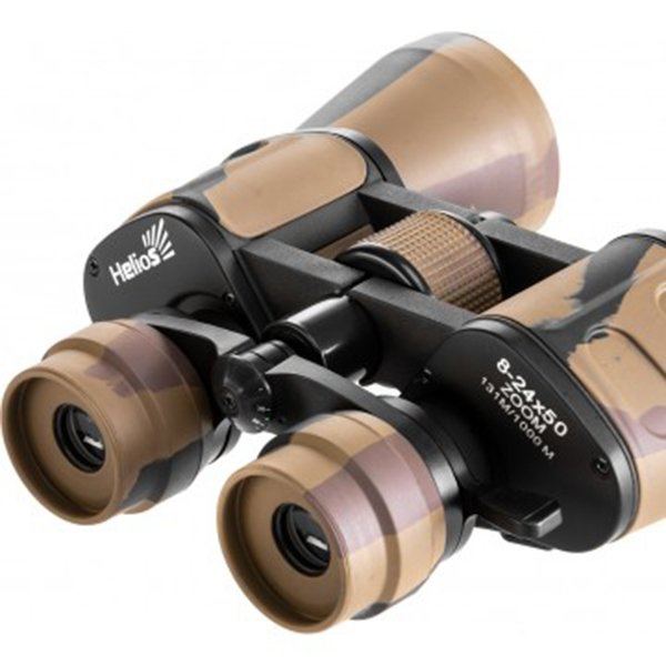 В конструкции бинокля используются Porro-призмы, оптические элементы Helios 8-24х50 изготовлены из высококачественного стекла ВАК-4 с многослойным просветляющим покрытием, которое гарантирует высокую светосилу, хорошую цветопередачу, яркое и контрастное изображения по всему полю зрения. Широкий диапазон переменного увеличения от 8 до 24 крат.