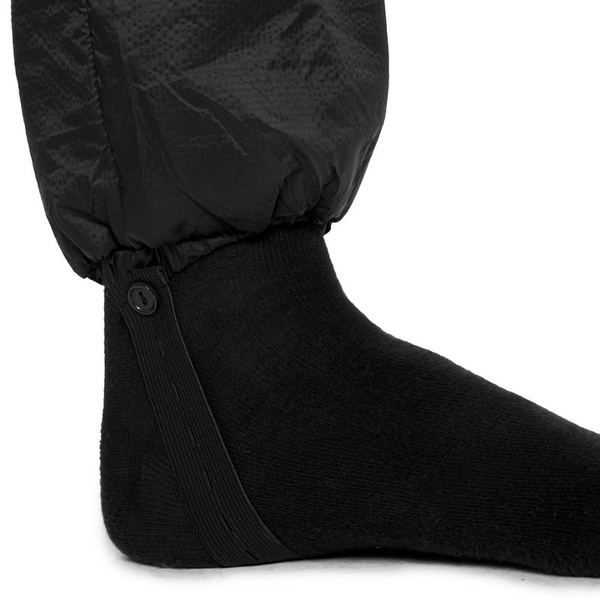 У этих брюк есть штрипки (петли на стопу), благодаря этому они не задираются, остаются всегда в одном положении. Это важно для того, чтобы сохранять тепло. При попадании в глубокий сугроб – если даже штаны первого слоя пропустили снег, то до ноги его не допустят эти брюки.