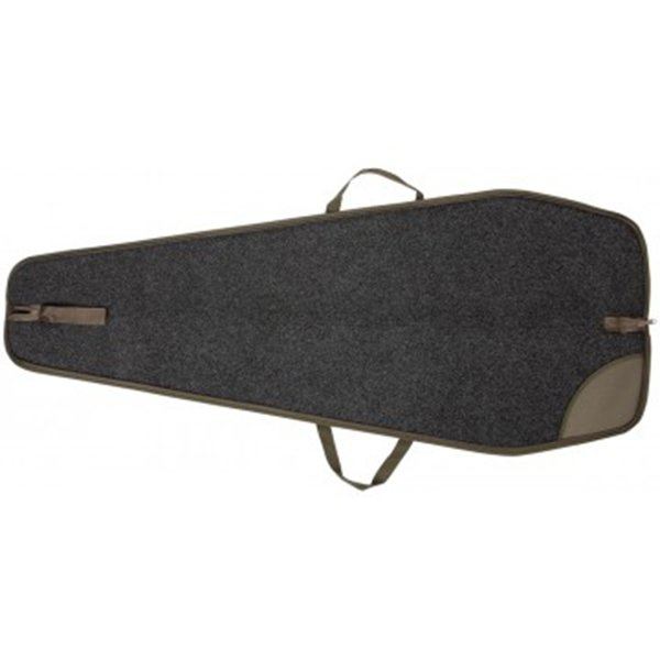 Выполнен из прочной ткани с пропиткой ПВХ, внутри плотное ворсовое иглопробивное полотно. Кейс застегивается на молнию, имеет ручки для переноски и металлические полукольца для крепления ружейного ремня.
