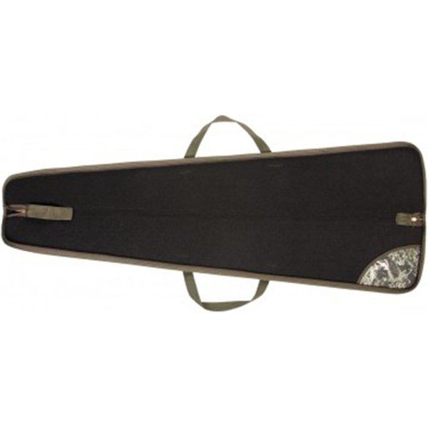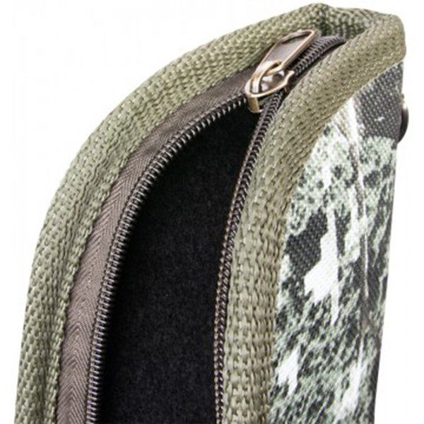 Выполнен из прочной ткани с пропиткой ПВХ, внутри плотное ворсовое иглопробивное полотно. Кейс застегивается на молнию, имеет ручки для переноски и металлические полукольца для крепления ружейного ремня.