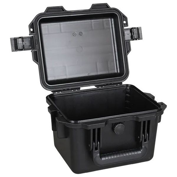 - Герметичный кейс закрывается двумя мощными пластиковыми замками с защитой от самопроизвольного открывания