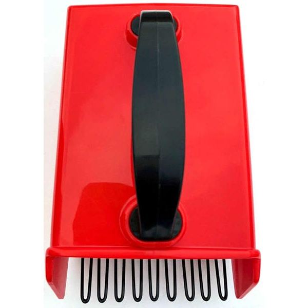 Комбайн для сбора ягод. Пластиковая ручка. Металлическая гребенка. Пластмассовый корпус.