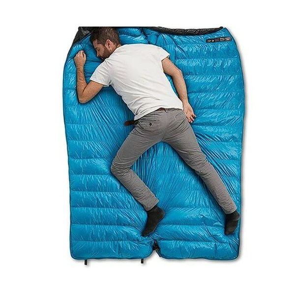Обеспечивает уютный и комфортный спокойный сон среди природы. Тёплый спальник – в состав входит гусиный пух. Сделано из 400 грамм гусиного пуха, не имеющего запаха. На ощупь – мягкий, приятный к телу. Очень высокое соотношение тепла и веса. Чистый пух по объёму занимает 90%.