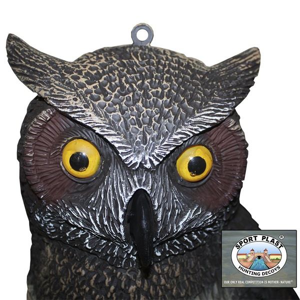 Муляж филина с подвижными крыльями Sport Plast 87-00 обладает механизмом, позволяющим шевелить крылья чучело - имитация движений настоящей птицы (некоторые умельцы подвешивают тяжелые предметы и крылья шевелятся под порывами ветра).