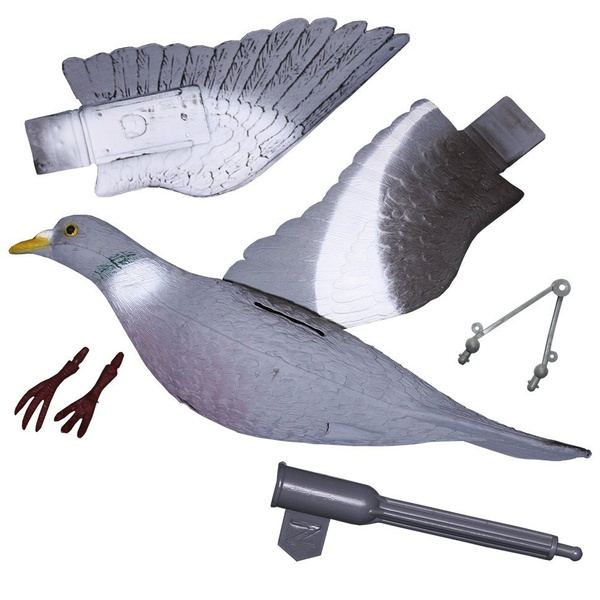 Привод вращения можно установить на земле или через переходник на любой деревянный черенок (даже в воде). Чучела отражают лучи солнца (без блика), благодаря объемной прорисовке оперения и специальной окраске, устойчивой к истиранию. Долговечность, реалистичность имитации настоящих птиц, соответствие пропорций обеспечивают чучелам летающих голубей Sport Plast высокую правдоподобность, а оригинальность формы позволяет увеличить эффект сманивания птиц.