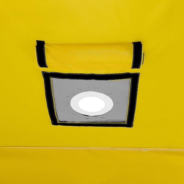 - Палатка выполнена в светло желтом цвете, который хорошо проводит свет, в палатке светло днем без дополнительного освещения