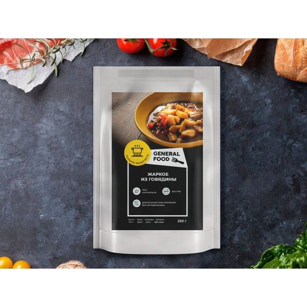 Способ приготовления: Любое блюдо в пакете быстро разогревается на водяной бане, в котелке на костре или же в микроволновке или сковороде, предварительно выложив блюдо в тарелку. С помощью беспламенного разогревателя можно приготовить обед в любых условиях.