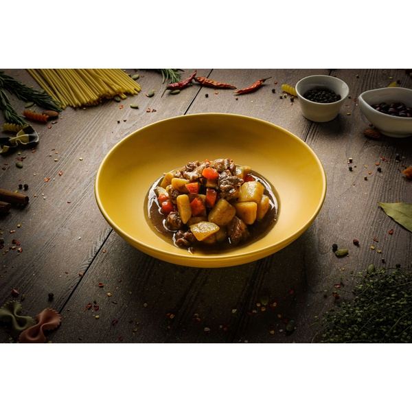Состав: говядина, лук репчатый, морковь, картофель, специи, чеснок, масло растительное.