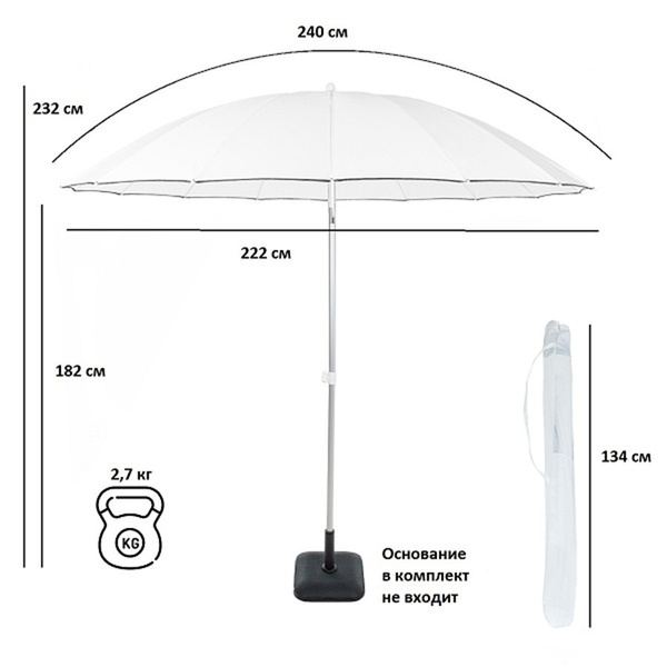 Перед использованием зонт необходимо надежно закрепить в основание для зонта. Основание в комплект поставки не входит.
